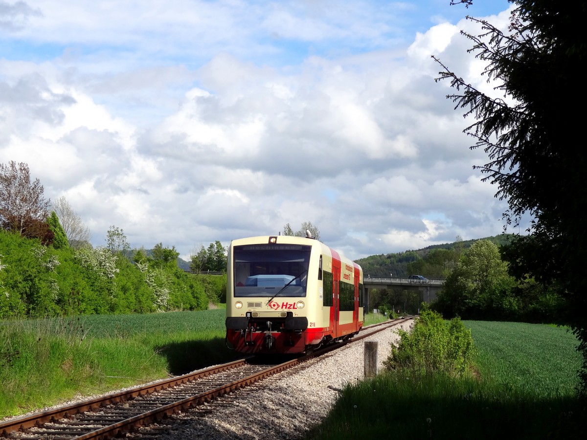 Am 9.5.14 war für den HzL VT218 perfektes Spotlight angesagt. Den ganzen Tag übertrumpften die Wolken und wenige Sekunden bevor der 650 vor meine Linse fuhr erwiesen sich die Wolken als gnädig und schenkten Licht. Aufgenommen bei Hechingen Stetten.