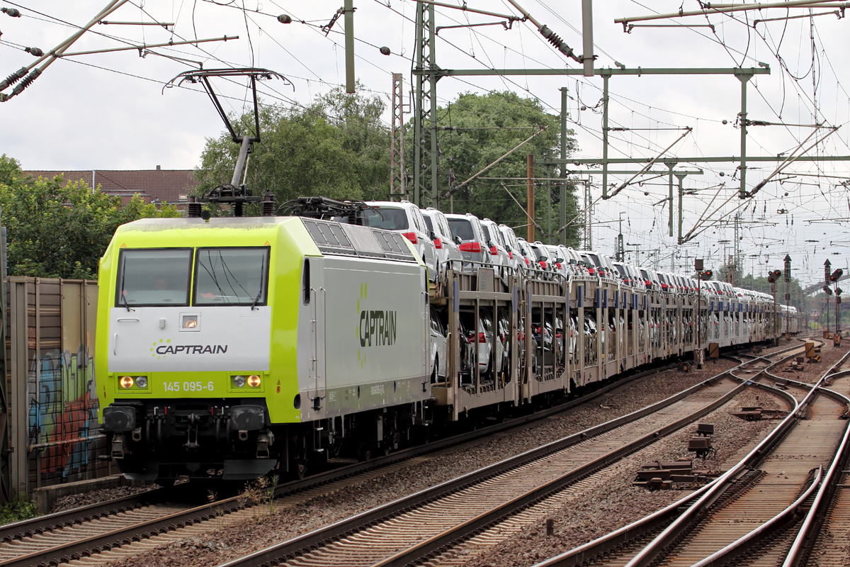 BLS 486 503 zog am 4.9.13 für TXL einen KLV nach Wanne-Eickel durch Ratingen-Lintorf.