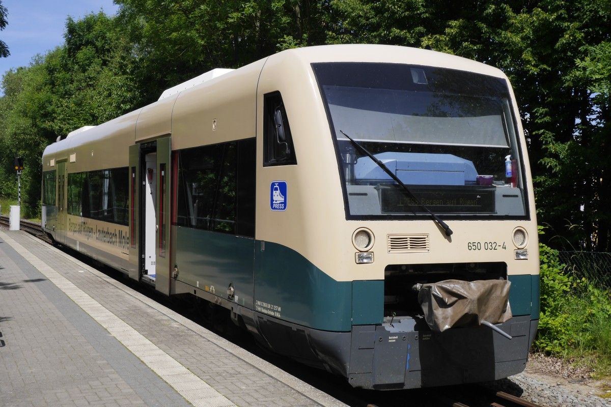 Am 15.Juni 2014 traf 03 1010 mit dem Sonderzug aus Eutin in Bergen/Rügen ein.In Bergen/Rügen gab es einen Richtungswechsel so das die Lok dann Tendervoran Richtung Putbus dampfte.Hier die Aufnahme in Bergen/Rügen.