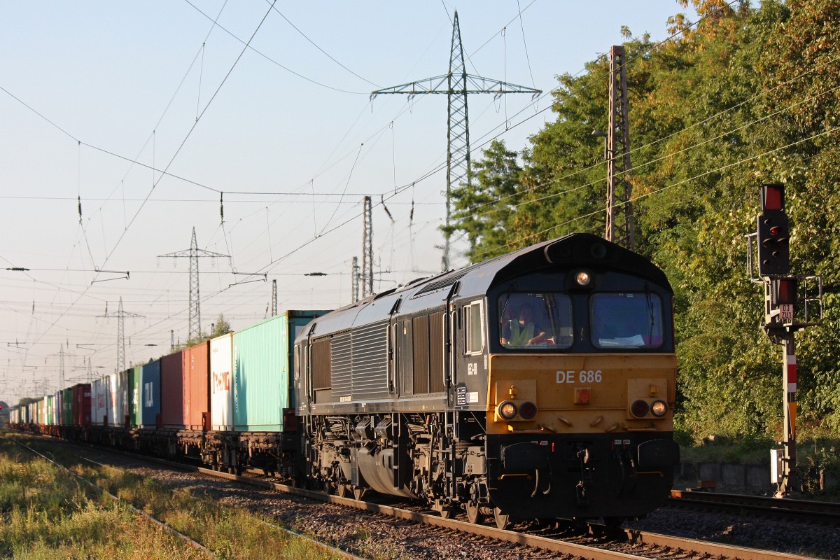 HGK DE686 am 4.9.13 mit einem Containerzug in Ratingen-Lintorf.