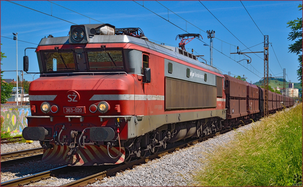 363 523-2 und 363 521-6 zusehen mit einem Kesselzug am 19.06.14 in Chotikov.