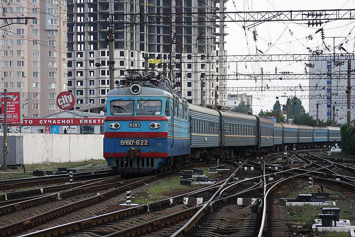 WL 60-622 fährt am 5.9.2009 mit einer ukrainischen Wagengarnitur in den Hauptbahnhof Odessa ein.