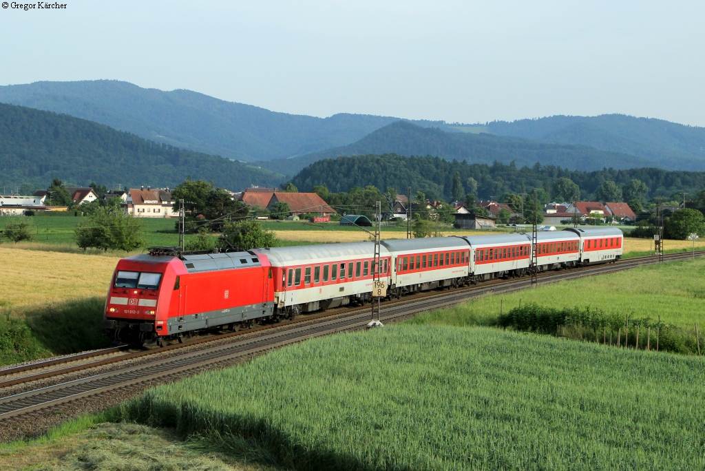 101 012-3 mit dem CNL 472 "Aurora" Basel-Kopenhagen bei Kollmarsreute, 07.06.2014.