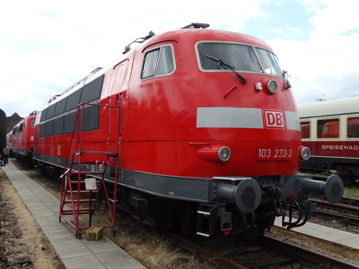 Eine "3-farbige" 120 im DB Museum Koblenz. Zwar durch den Zaun, weil das Museum geschlossen hatte, als ich dort vorbei kam, aber trotzdem ein interessanter Anblick.
