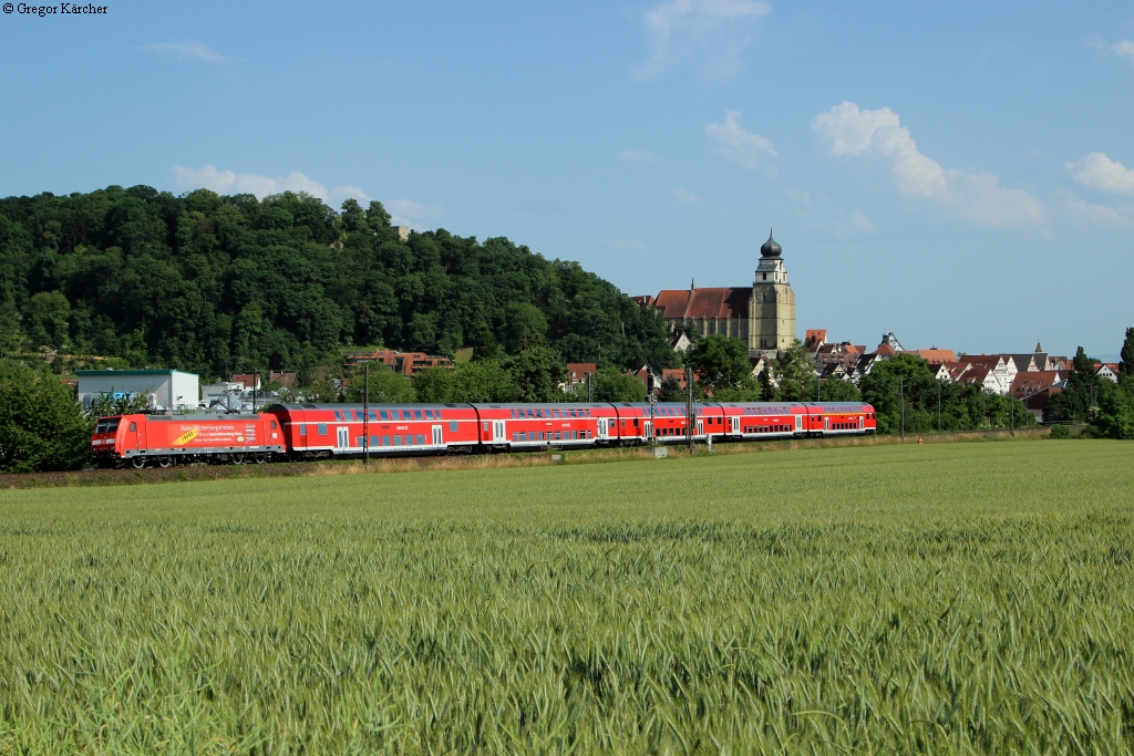 146 225 mit einem RE nach Stuttgart bei Herrenberg, 08.06.2014.