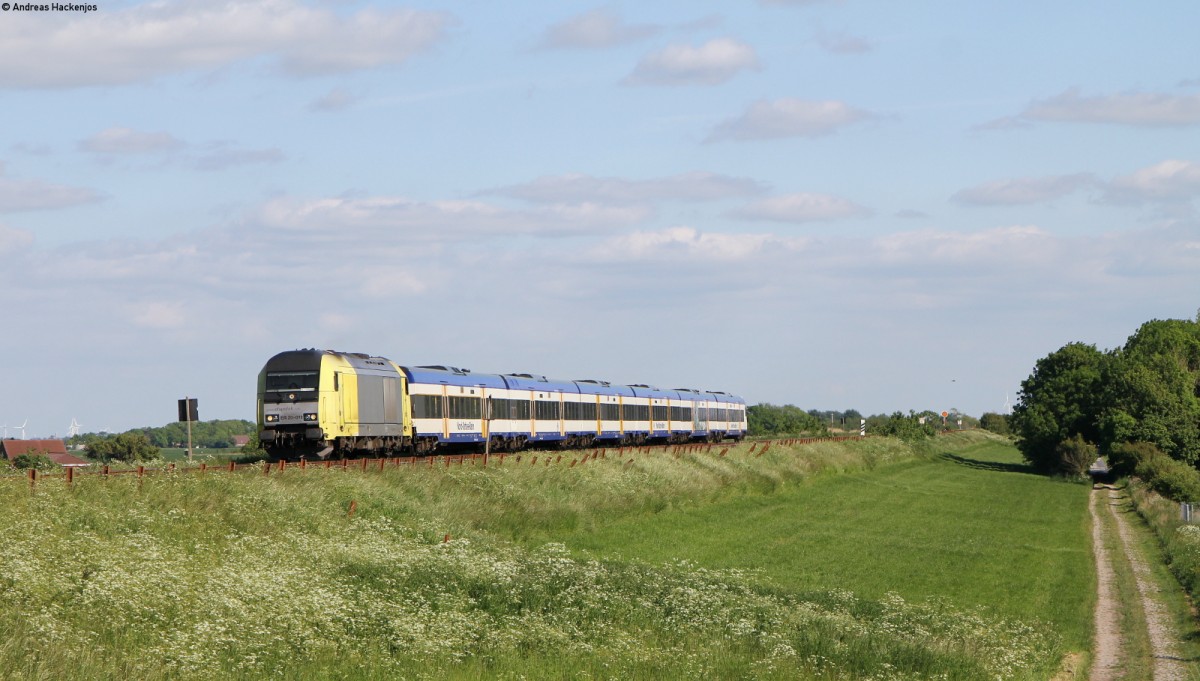 NOB81733 (Westerland(Sylt)-Hamburg Altona) mit Schublok 251 007-1 bei Morsum 29.5.14