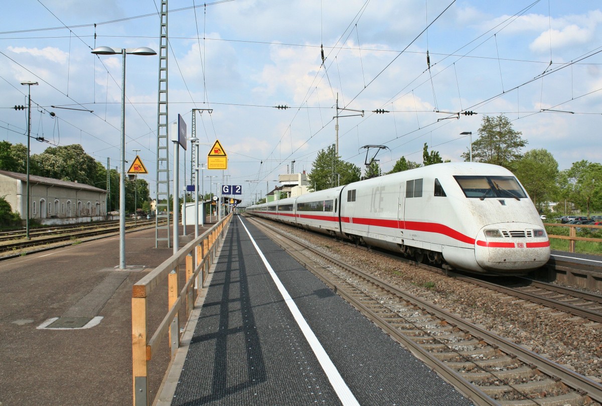 401 007-0 als ICE 270 von Basel SBB nach Berlin Ostbahnhof am Nachmittag des 25.04.14 beim Verlassen des Bahnhofs Müllheim (Baden).