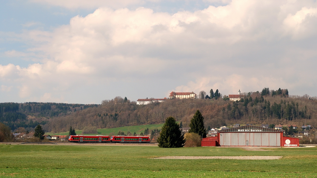 612 581 mit RE 3935 bei Bad Grönenbach (28.03.2014)
