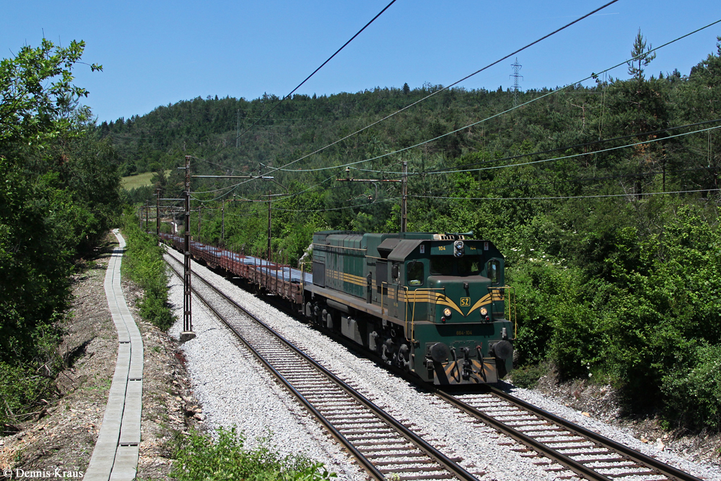 SŽ 664-106 zieht Güterzug durch Ausweichstation Cirkovce-Polje Richtung Hodoš. /3.6.2014