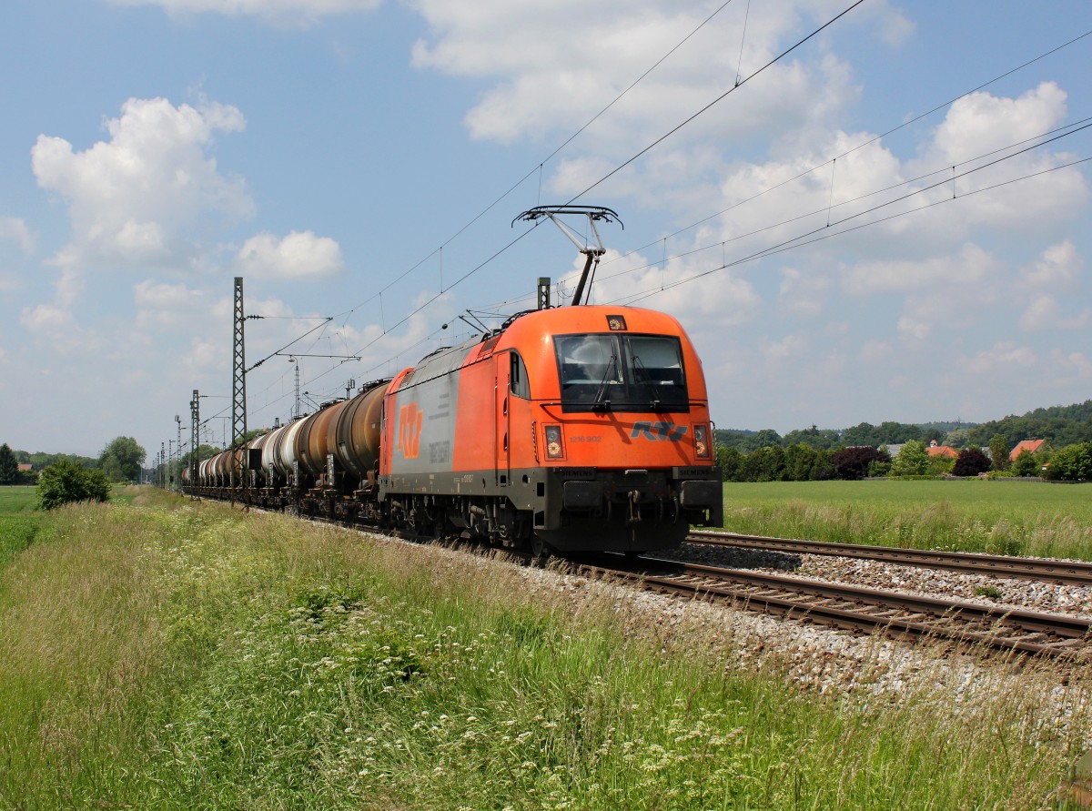Mit einem Güterzug sind am 24.06.2014 1142 575 und 1142 685