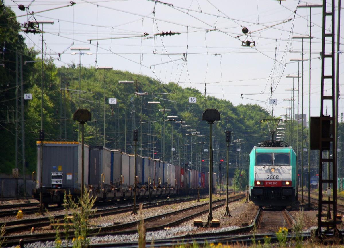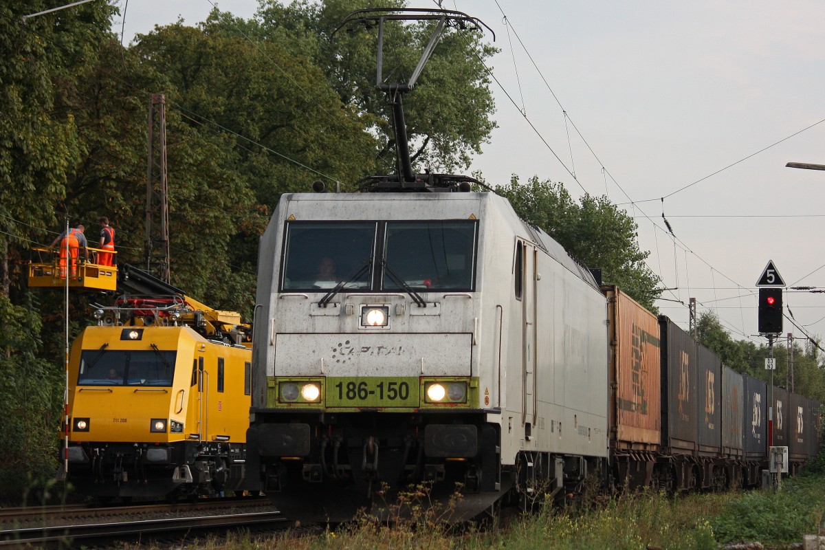 Locon 186 150 am 6.9.13 mit einem Containerzug in Ratingen-Lintorf.