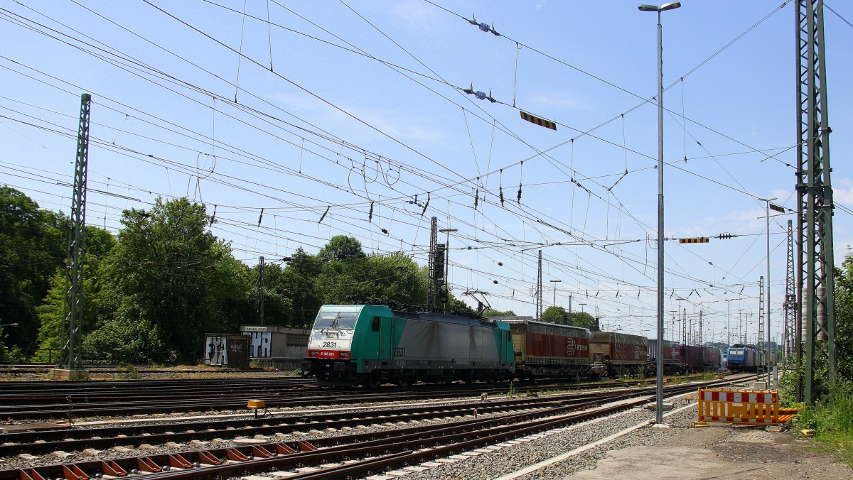 185 149 führte am 22.06.14 zusammen mit einer Schwesterlok einen gemischten Güterzug durch Bitterfeld Richtung Dessau.