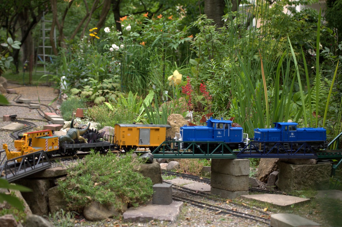 Die 600 mm Schmalspurlokomotive 199 102-5 "Gunther" rangiert am 17.05.2014 im Endbahnhof der Parkeisenbahn Wuhlheide.