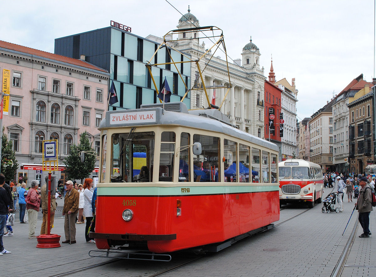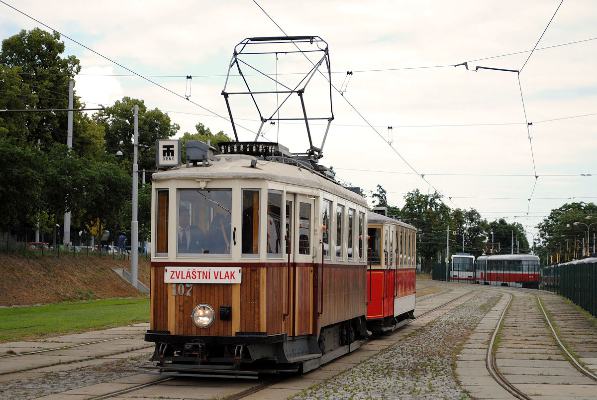 Anläßlich des 145-jährigen Jubiläums der Straßenbahn in Brünn gab es am 21.06.2014 auch Fahrten mit historischen Fahrzeugen. Der aus dem Jahr 1869 stammende und hervorragend restaurierte Pferdebahnwagen Nr.6 nähert sich dem nam. Svobody.