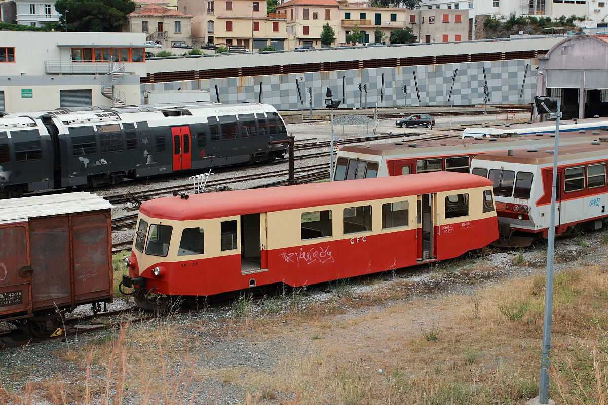 Museum oder Schrottplatz? Zu befürchten ist leider letzteres. Zwischen zwei in den 1960er Jahren für die korsischen Eisenbahnen gebraucht beschafften Billard-Triebwagen der Serie A80D (gebaut zwischen 1938 und 1949) ist die Lokomotive 114 abgestellt (Bastia 15.06.2014). Dabei handelt es sich um einen Eigenbau des Depots Bastia aus dem Jahre 1958. Die Untergestelle stammen vom Billard-Triebwagen 114. Auch die im Hintergrund abgestellten Triebwagen der Reihen X 2000 und X 5000 werden anscheinend nicht mehr benötigt, obwohl sie erst zwischen 1975 und 1981 in Dienst gestellt worden sind.