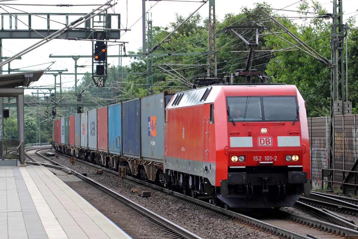 Captrain 145 095-6 passiert mit ihrem BLG-Autozug am 20.06.2014 den Bahnhof Hannover Linden/Fischerhof.