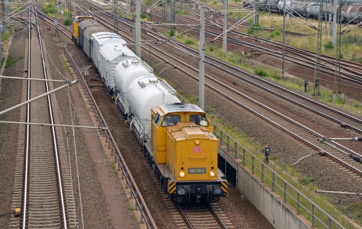 203 312 führte zusammen mit 203 314 am 15.06.14 einen Spritzzug durch Bitterfeld Richtung Dessau.