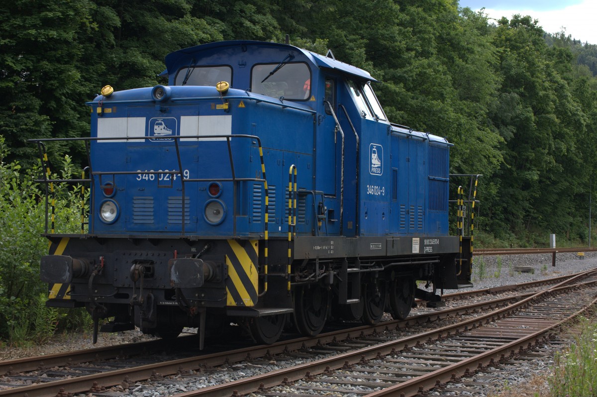 76 109 von Raildox zieht am 26. Juni 2014 einen Düngezug durch Kronach in Richtung Lichtenfels.