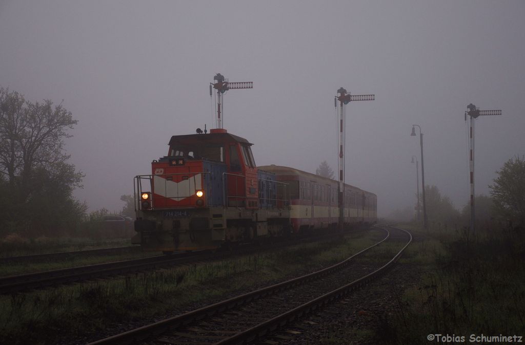 Bei der Einfahrt in den zwischen Aulendorf und Mochenwangen liegenden Schussentobel überquert die von Stuttgart kommende 218 432-3 mit dem IRE 20775 nach Friedrichshafen bei Kilometer 159.0 zum zweiten Mal die Schussen. Auf Grund einer Gleisbaustelle in Biberach (Riß) und einer technischen Störung zwischen Geislingen (Steige) und Ulm fuhr dieser IRE am 08.06.2014 anstatt nach Lindau nur nach Friedrichshafen, hatte geänderte (Ab)Fahrzeiten und eine andere Zugnummer.