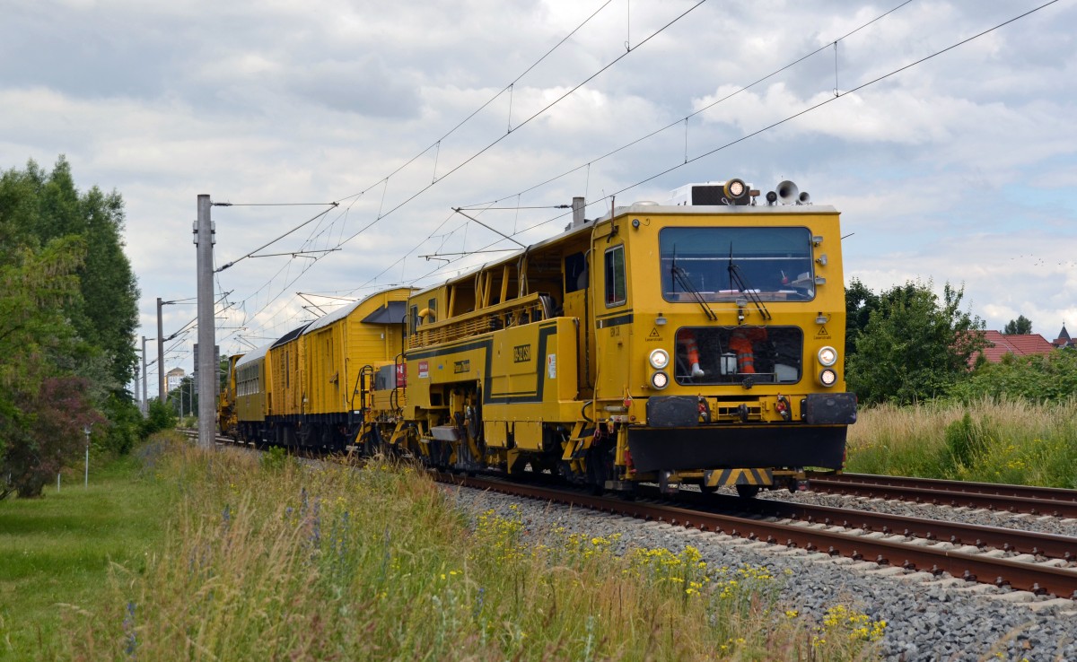 Am 15.06.14 rollte eine Stopfmaschine mit weiteren Bauzugwagen und Profiliermaschine durch Greppin Richtung Bitterfeld.