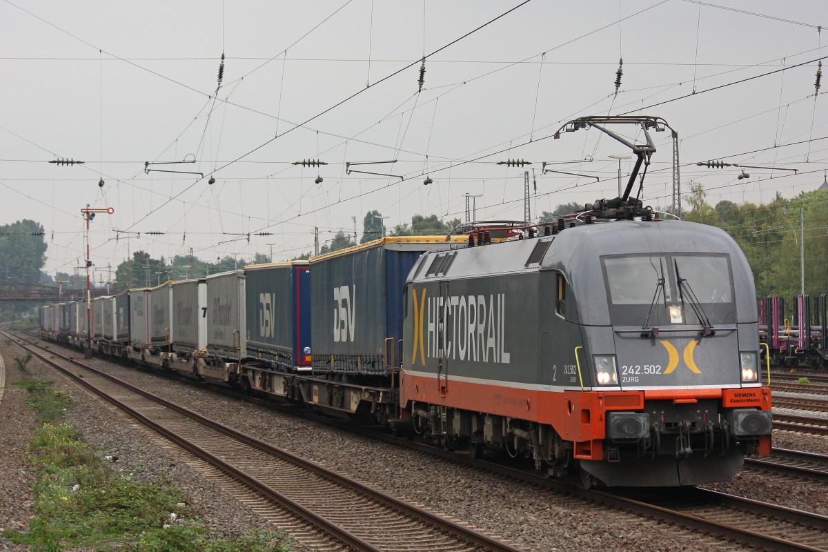 Hectorrail 242.502 "Zurg" am 7.9.13 mit einem KLV in Düsseldorf-Rath.