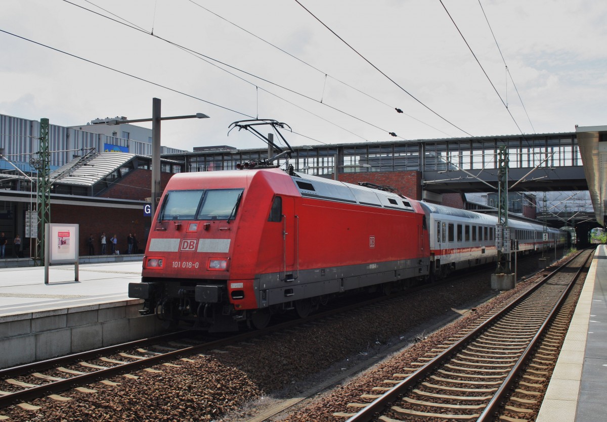 Hier 101 018-0 mit IC2354 von Berlin Gesundbrunnen nach Köln Hbf., bei der Einfahrt am 27.6.2014 in Berlin Gesundbrunnen.