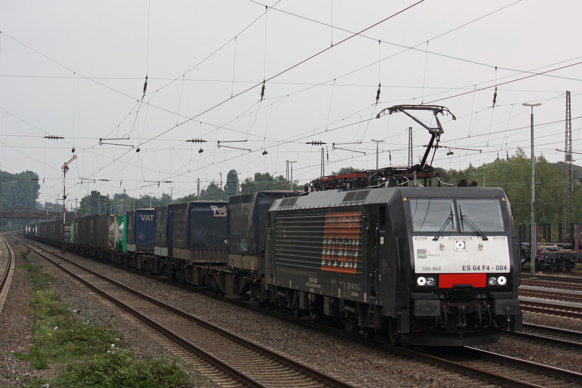MRCE Dispolok/locon ES 64 F4-084 am 7.9.13 mit einem umgeleiteten Containerzug in Düsseldorf-Rath.