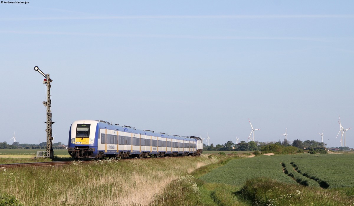 NOB81811 (Westerland(Sylt)-Niebüll) mit Schublok 251 009-7 bei Lehnshallig 30.5.14