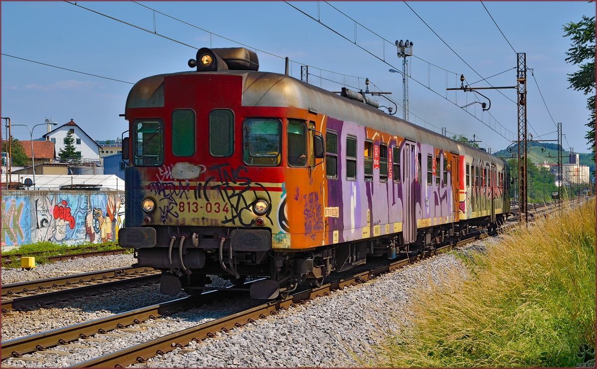 SŽ 813-034 fährt durch Maribor-Tabor Richtung Ormož. /13.6.2014