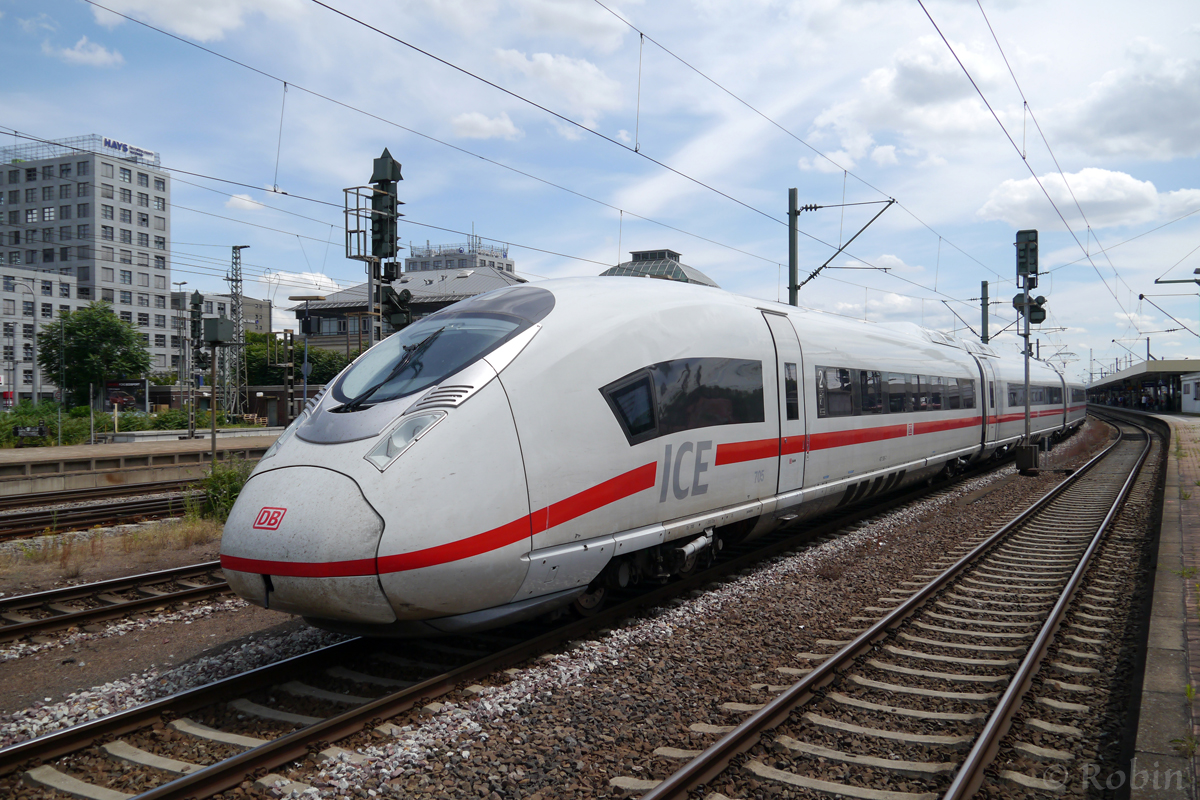 Die noch für Testfahrten eingesetzten Velaro-D Triebzüge 714 und 705 standen am 26.06.14 in Mannheim. Sie werden für die Zulassungsfahrten für Frankreich und Belgien eingesetzt, waren also noch nie im Fahrgasteinsatz. Alle Sitze sind noch in Folien verpackt und der rote Zierstreifen wurde auch noch nicht vollständig angebracht.