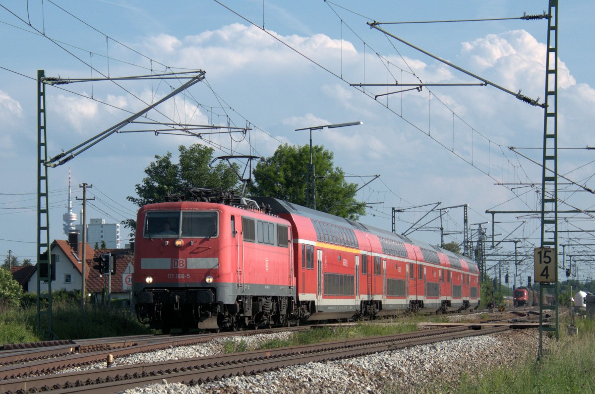 111 166 am 08.06.13 mit der RE gen Nürnberg in München-Feldmoching