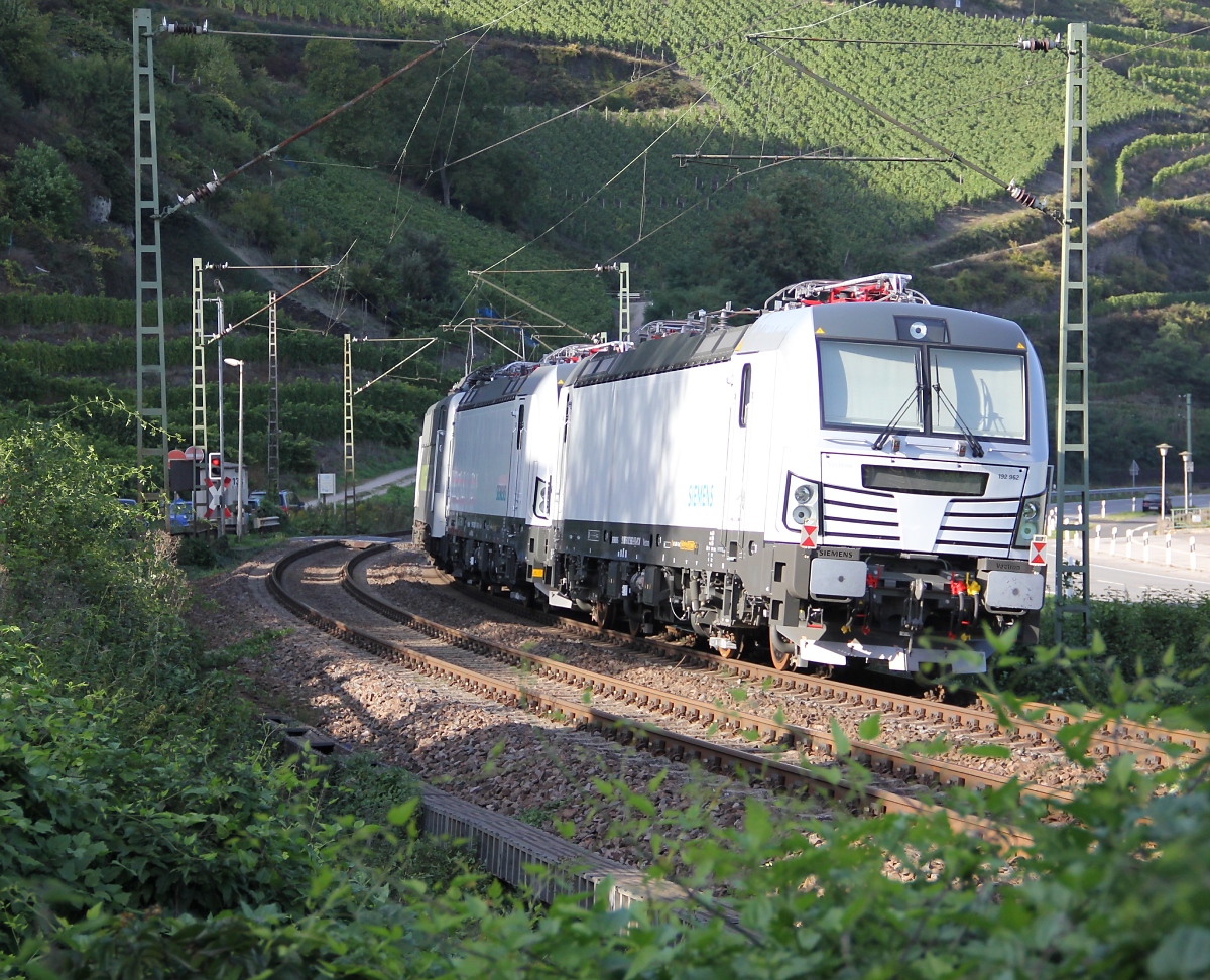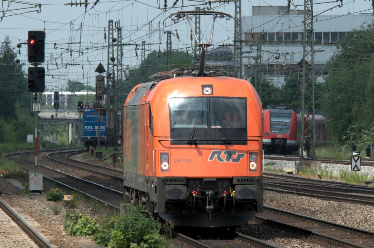 193 832 der RurtalbahnCargo und eine weitere Vectron auf der Südumgehung des Rangierbahnhofs München Nord, 28.06.2014