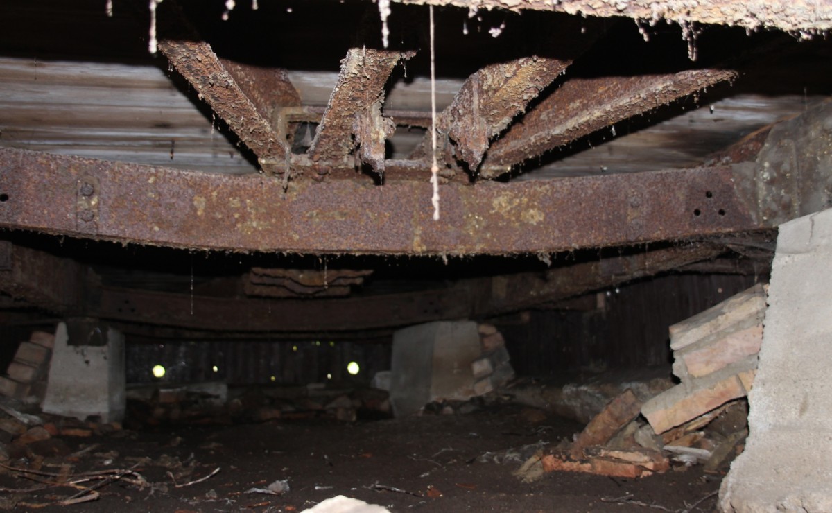 28.6.2014 Bernau / Schönow. Rahmen / Untergestell eines alter Wagens der (vermutlich weil naheliegend) Berlin-Stettiner Eisenbahn, der als Wochenendhaus dient. Vorbesitzer meint, der Wagen sei um 1928 dorthin gekommen.