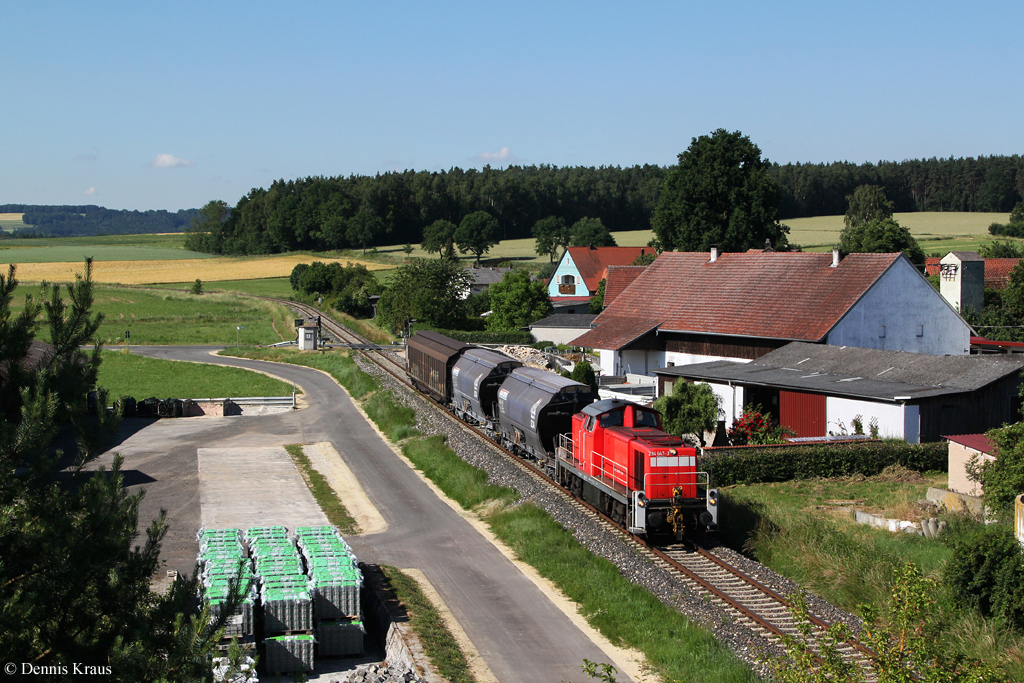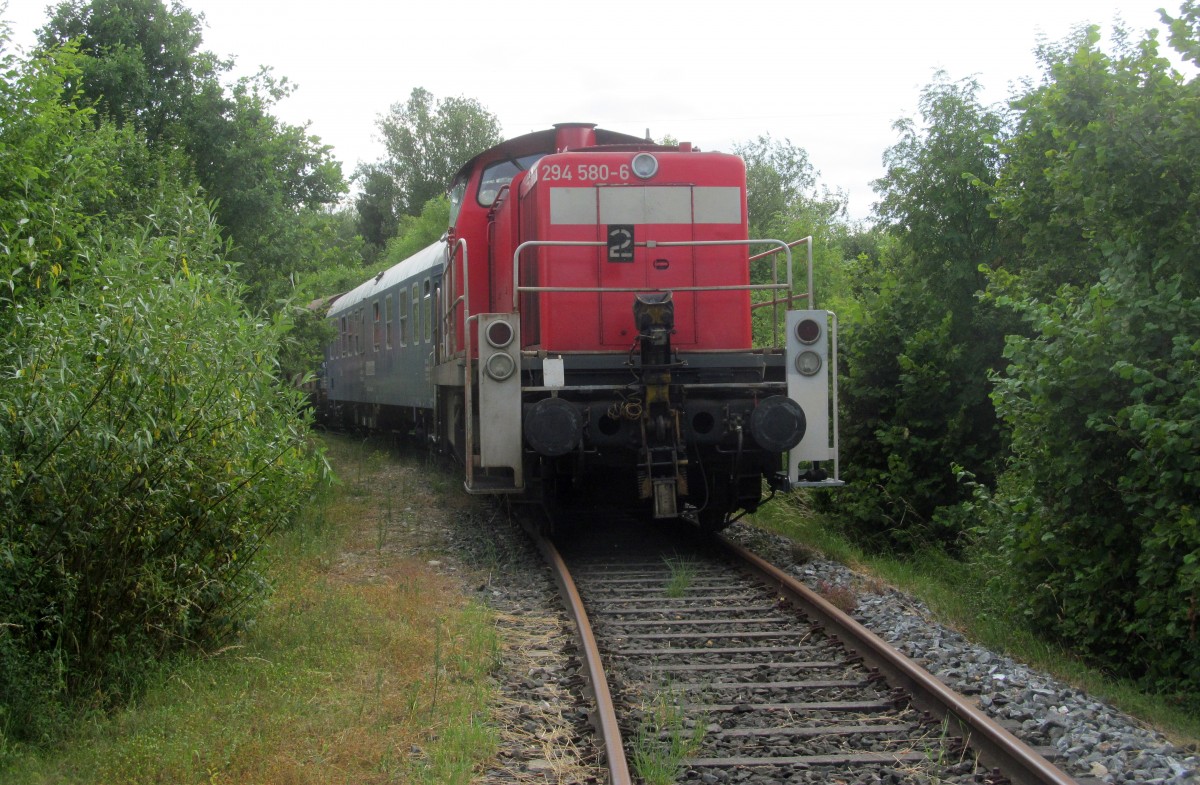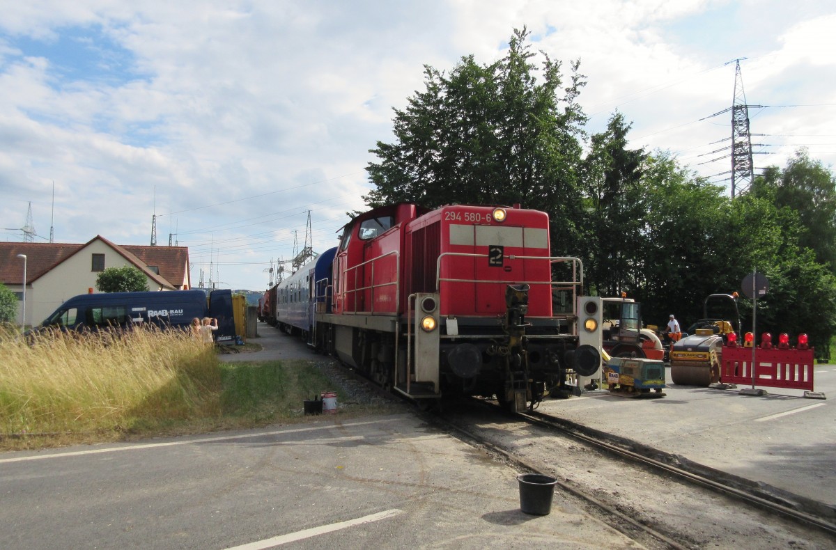 294 580-6 steht am 22. Juni 2014 mit einem leeren Trafotransport im Verbindungsgleis Umspannwerk - Haltepunkt Redwitz (Rodach) und wartet auf die Weiterfahrt.