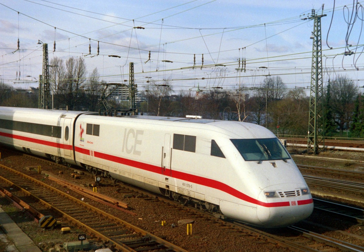 401 578 als ICE 79 "Limmat" (Hamburg–Zürich) am 19.03.2000 in Hamburg Hbf