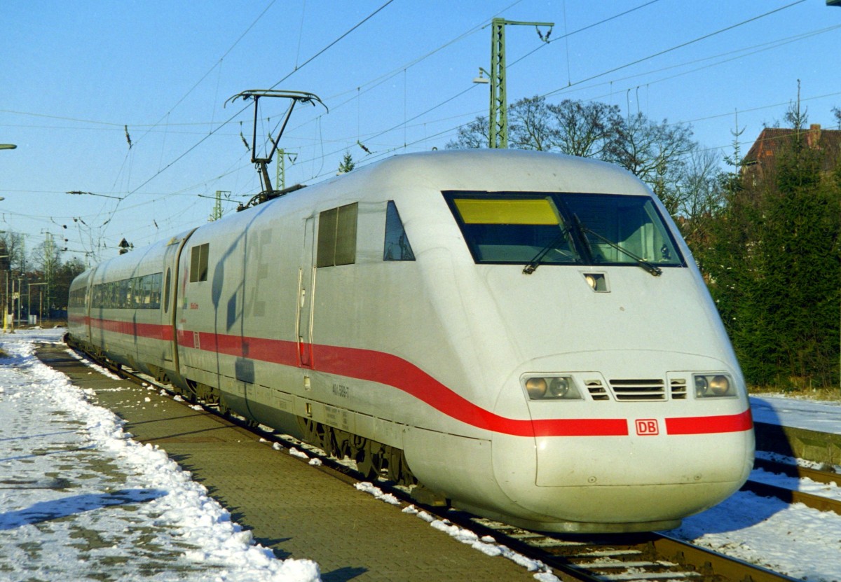 401 589 als ICE 79 "Limmat" (Hamburg–Zürich) am 23.01.2000 in Lüneburg