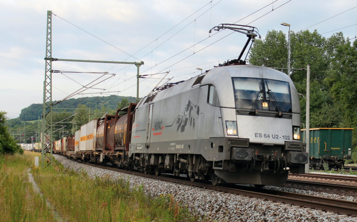 152 007-1 zog einen containerzug am 19.06.14 durch hh-harburg,daneben stand 145 094-9 von captrain und wartete auf weiterfahrt