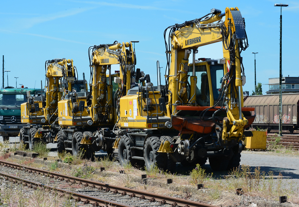 Schleifmaschine Rg 48 von Schweerbau rangiert am 27. Juni 2014 im Bahnhof Kronach.