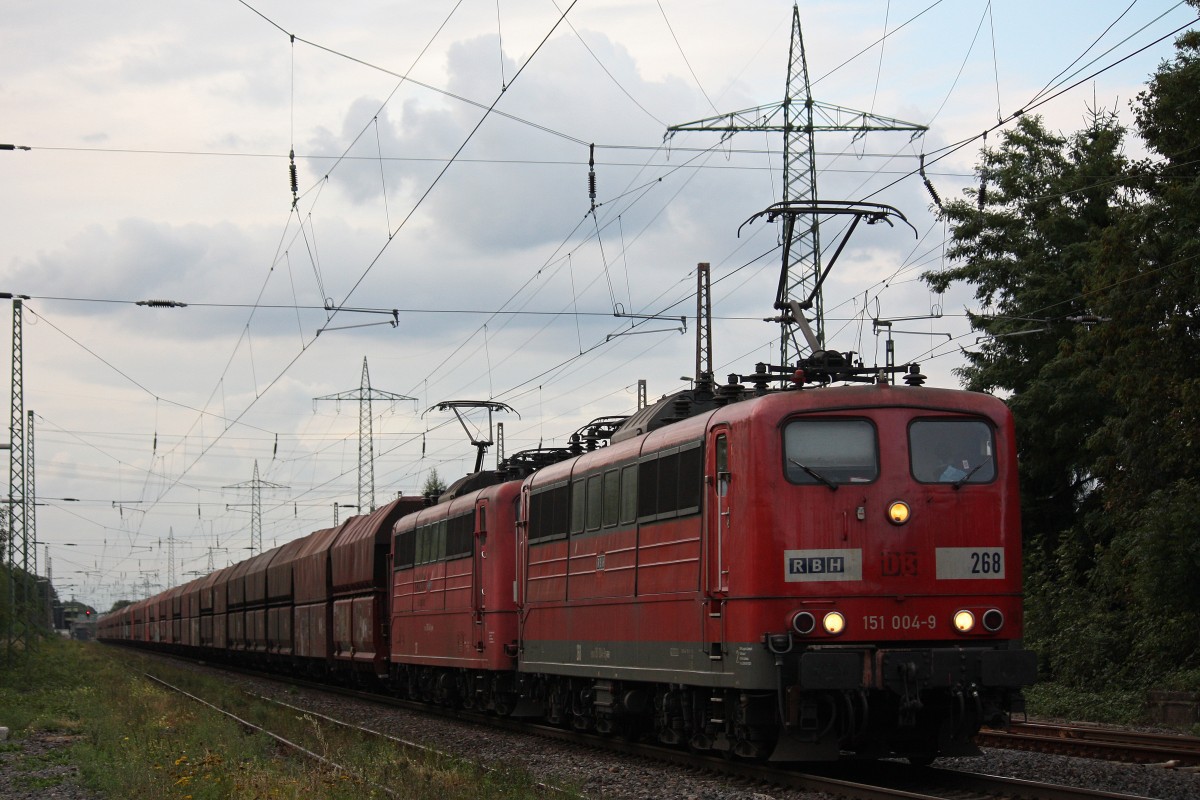 RBH 268 (151 004)+RBH 267 (151 144) am 9.9.13 mit einem Kohlezug in Ratingen-Lintorf.