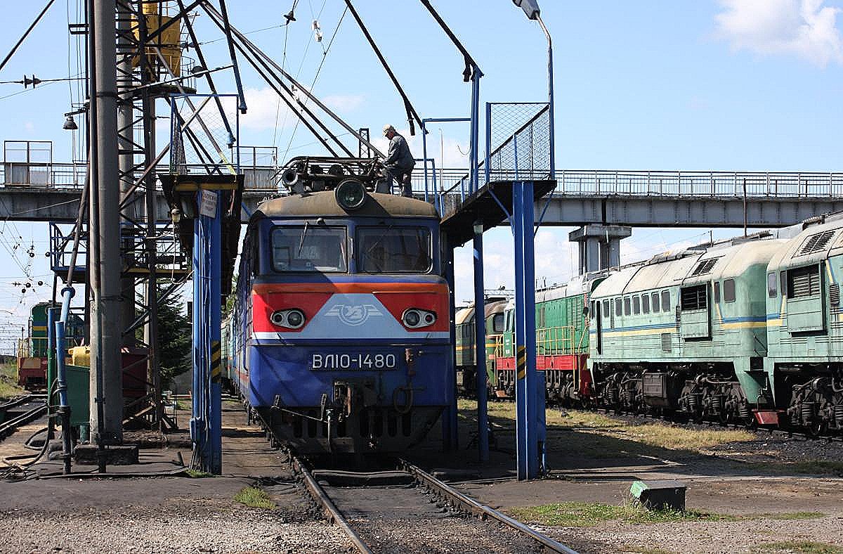 Unter der Besandungsanlage im Depot Tschop steht am 1.10.2009 die sonderlackierte WL 10-1480. Die Lackierung ist in meinen Augen eine gelungene Sache!