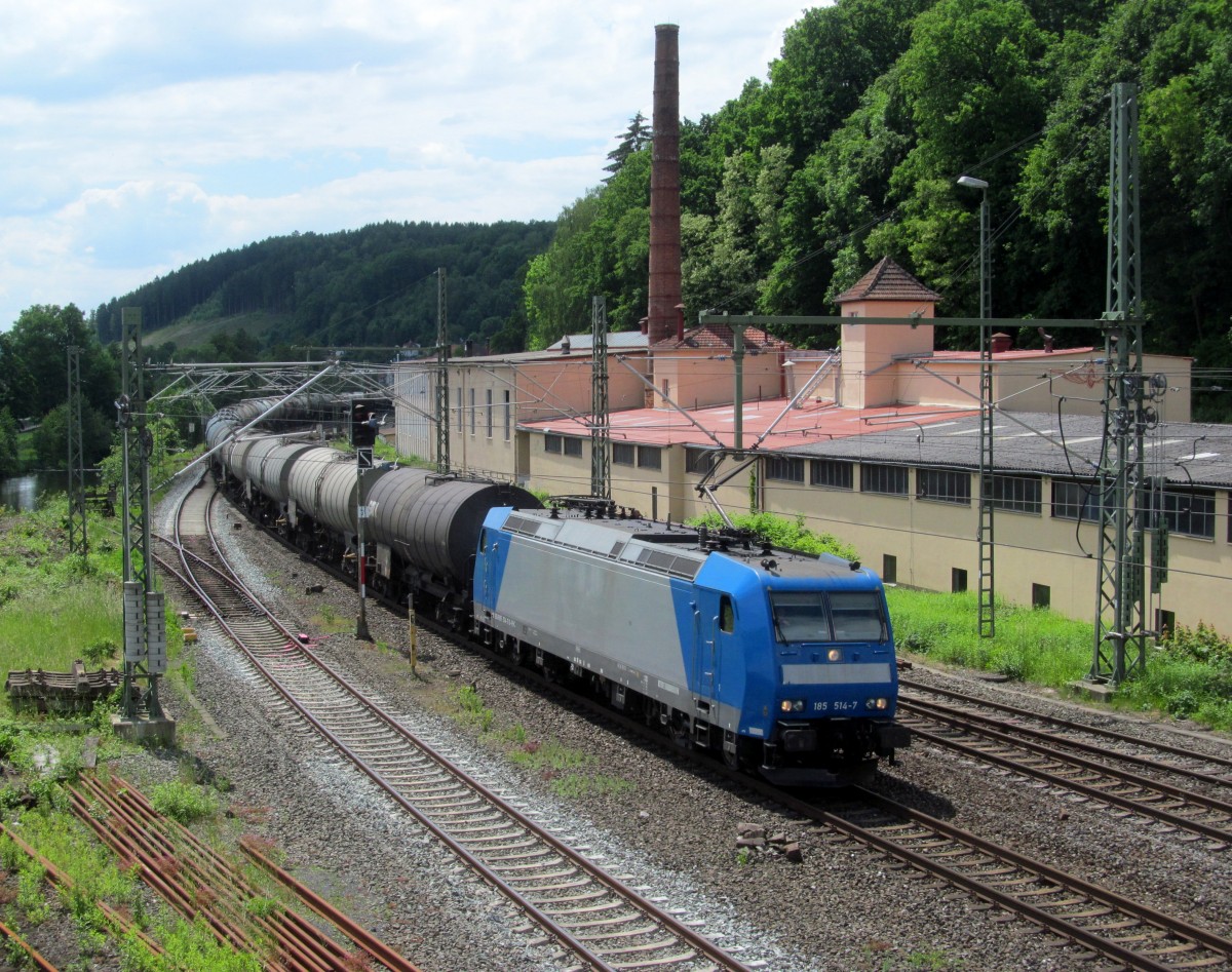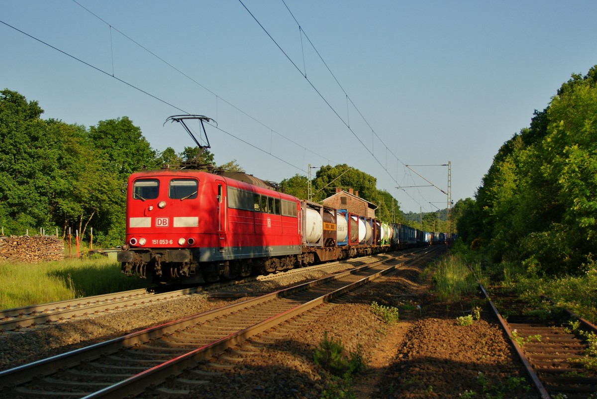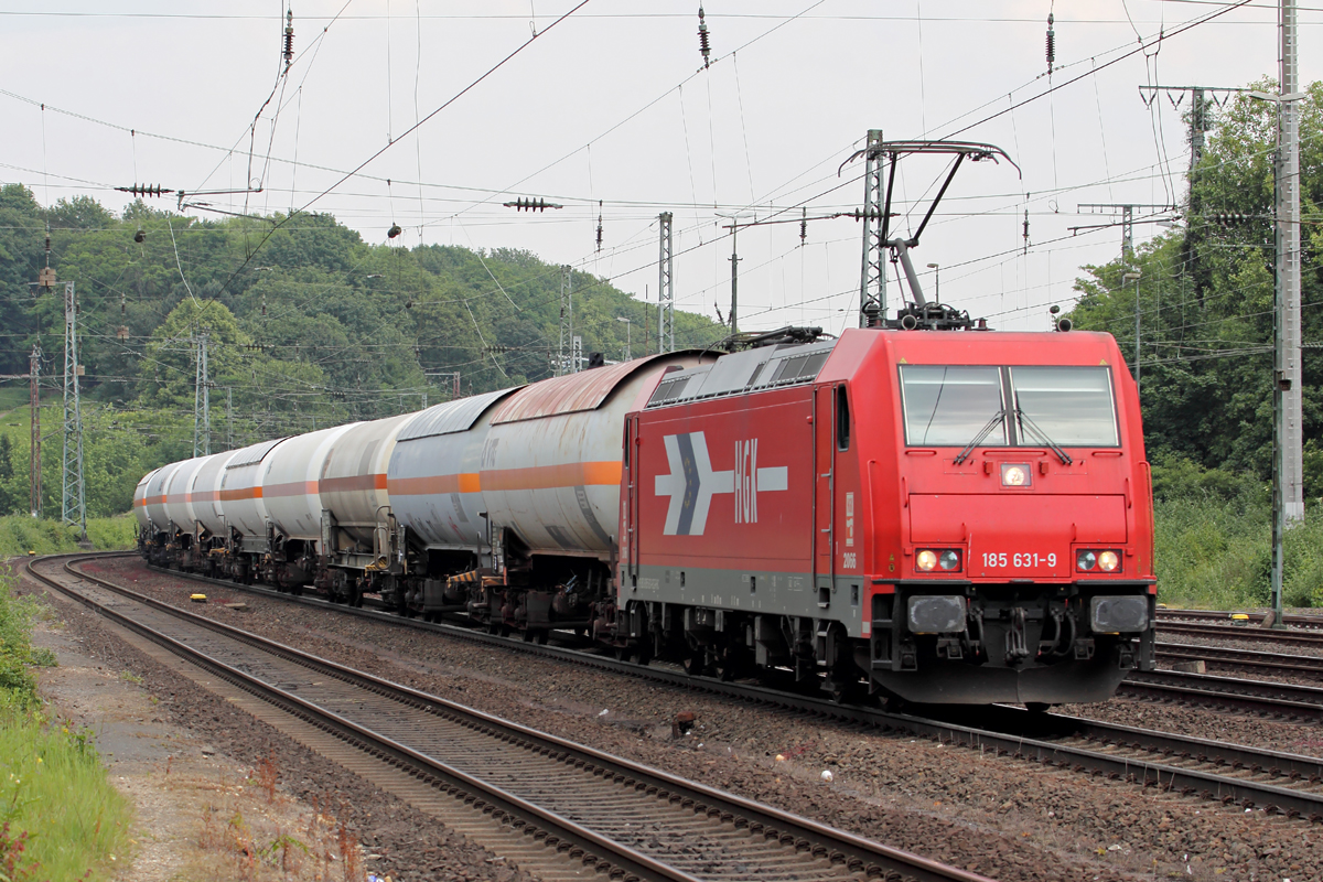 185 052-8 DB kommt durch Kohlscheid mit einem langen gemischten Güterzug aus Osnabrück nach Kortenberg-Goederen(B) und fährt die Kohlscheider-Rampe hoch nach Aachen-West ujnd fährt in Richtung Richterich,Laurensberg,Aachen-West. Bei einem Regenschauer am Abend vom 13.5.2014. Und das ist mein 3200tes Bahnbild bei http://WWW.Bahnbilder de.