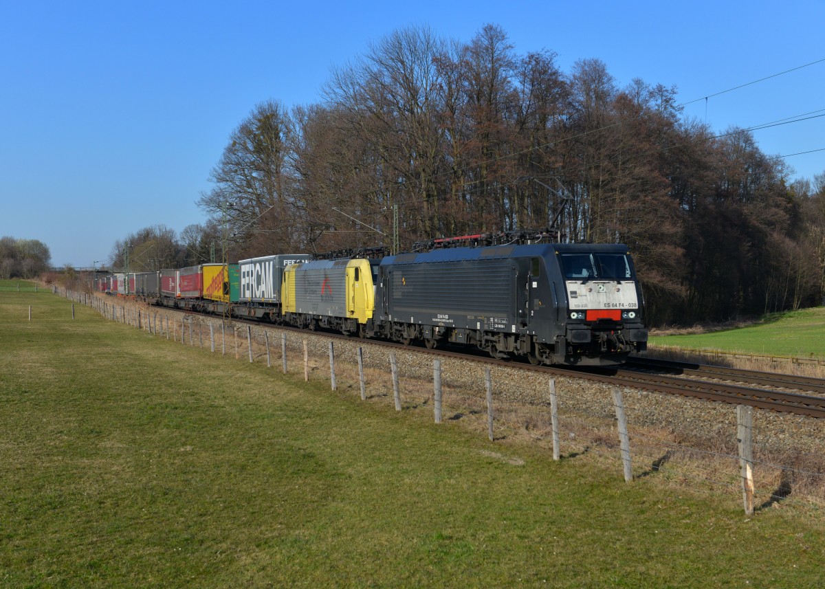 ES 64 U2-019 mit Containern am 30. Mai 2014 bei Haiding.