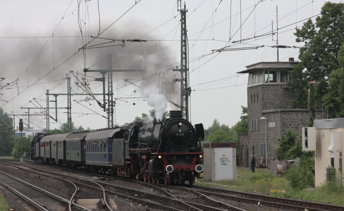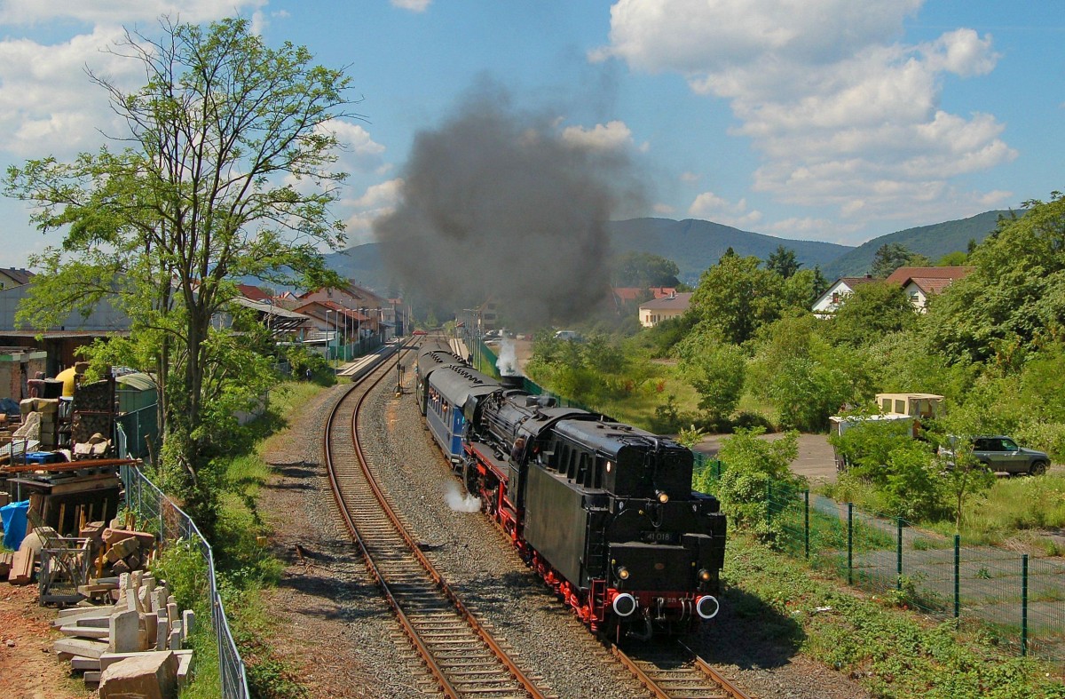 In tadellosem Zustand präsentierte sich die 01 202 des schweizer Vereins 01 202 beim Dampfspektakel, hier bei der Ausfahrt aus Landau am 31.05.2014