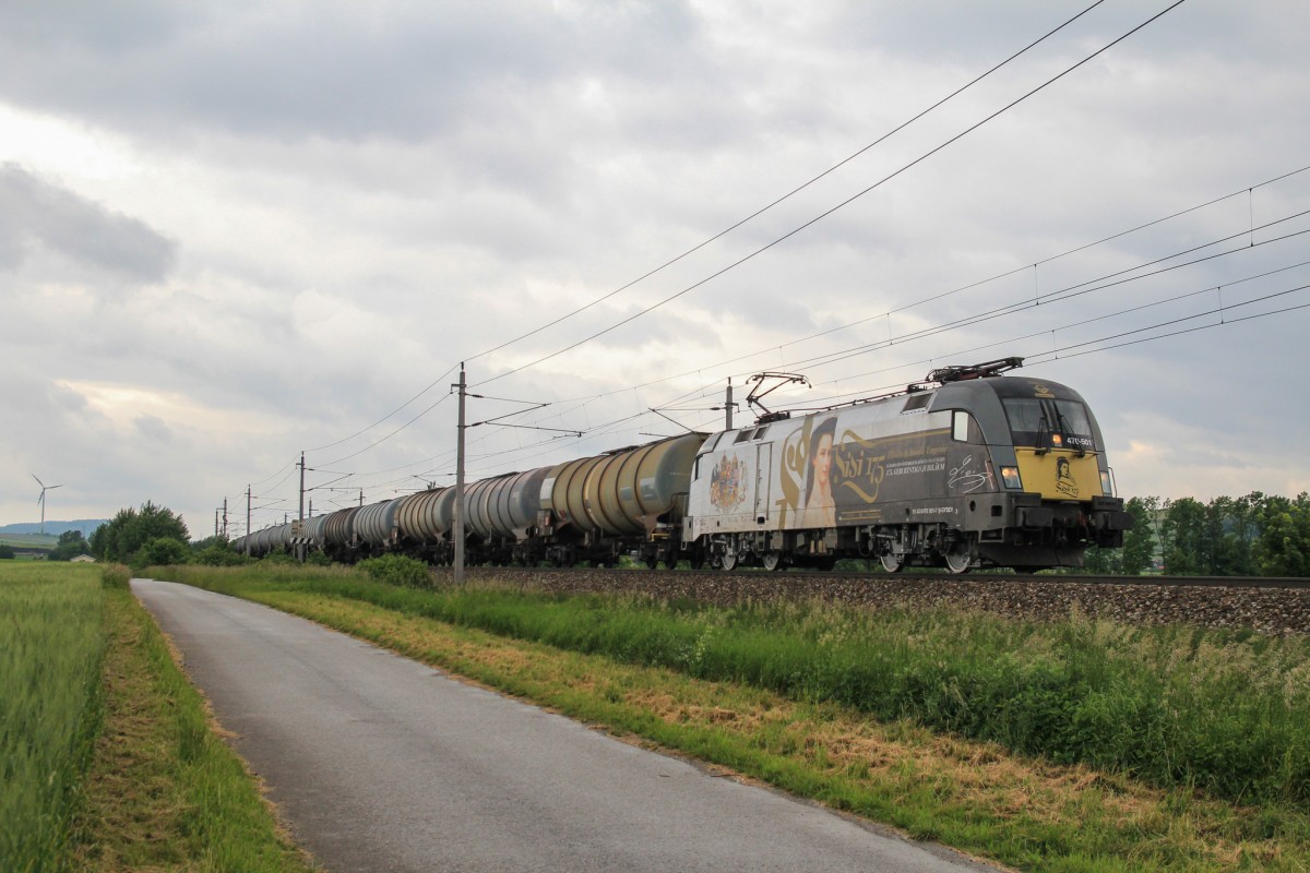 ES 64 U2-081 mit Stahlzug am 29. Mai 2014 bei Großsierning.