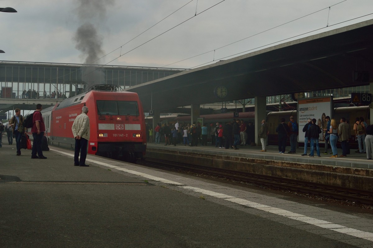 Also Doch!!!! Eloks sind doch Umwelt verschmutzer ;-D~~~~~~~~ Hier steht leider nur die 101 140-2 mit einem IC vor der 01 202 und ihrem Silberlingzug nach Heilbronn....und versperrt den Fotografen auf dem Bahnsteig Gleis 9 die Sicht auf den Dampfzug. Dafür schönen Dank an den Fahrdienstleiter....dafür hat er die schönere und zum Dampfzug passendere 103 113 auf Gleis 7 einfahren hat lassen.....nun ja. Dann eben dieses Bild. 29.5.2014