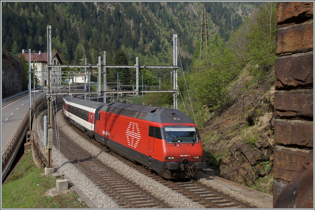 Re 460 001-1 befindet sich am 24.05.2014 mit dem IR 2184 bei Steinen.
