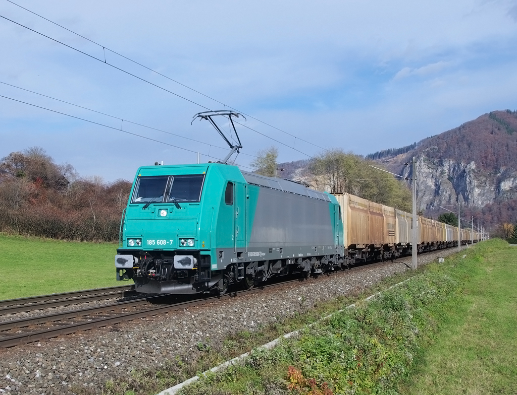 185 006-4 DB kommt durch Kohlscheid mit einem langen Audi-VW-Zug aus Osnabrück nach Kortenberg-Goederen(B) und fährt die Kohlscheider-Rampe hoch nach Aachen-West ujnd fährt in Richtung Richterich,Laurensberg,Aachen-West.