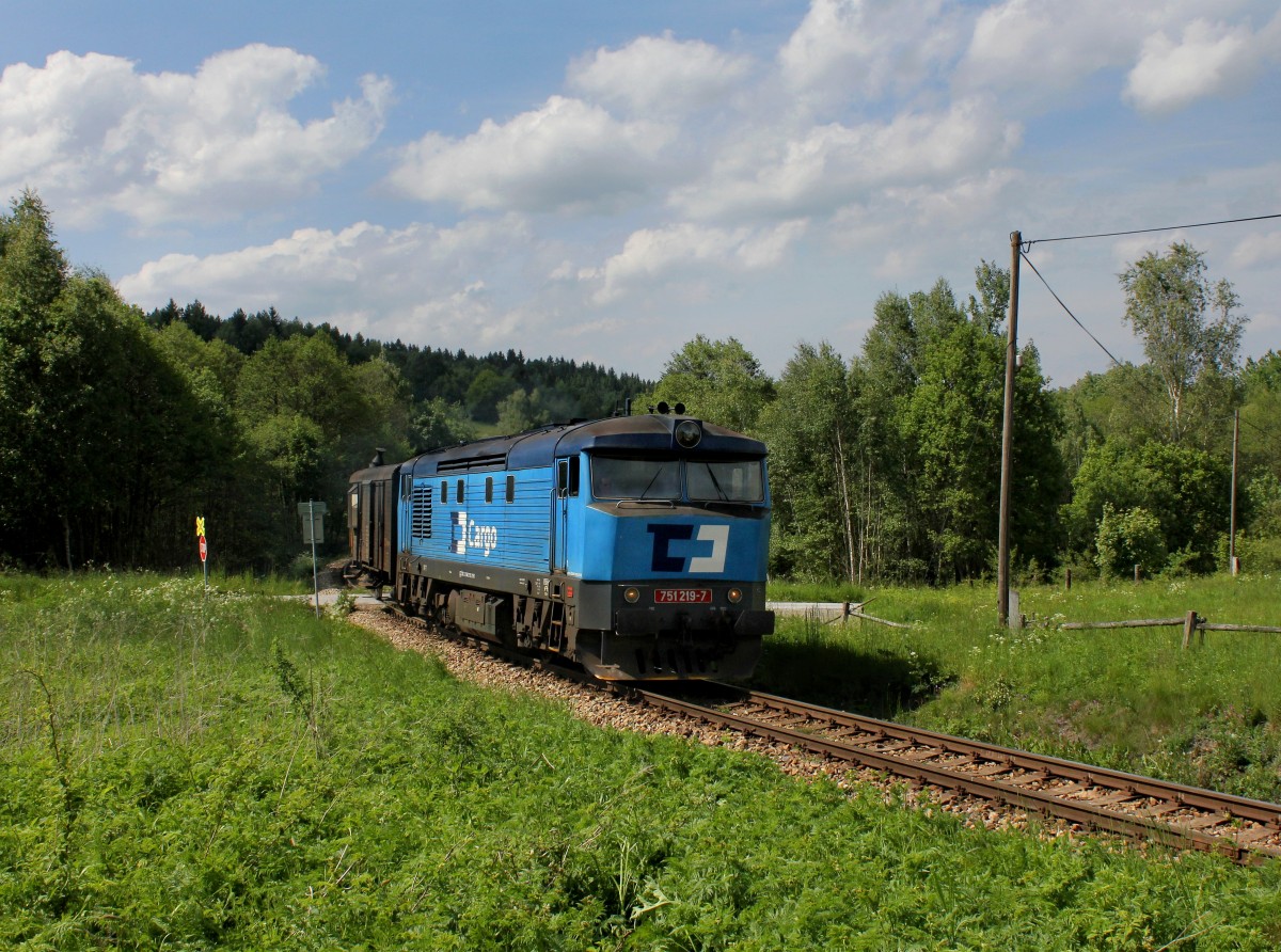 754 078 mit einem Os nach Budweis am 01.06.2014 bei Sebanov.