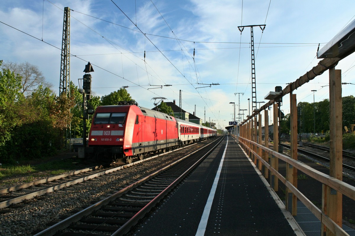 101 031-3 mit dem CNL 472 von Basel SBB nach Kopenhagen am Abend des 17.04.14 im Bahnhof Müllheim (Baden).
