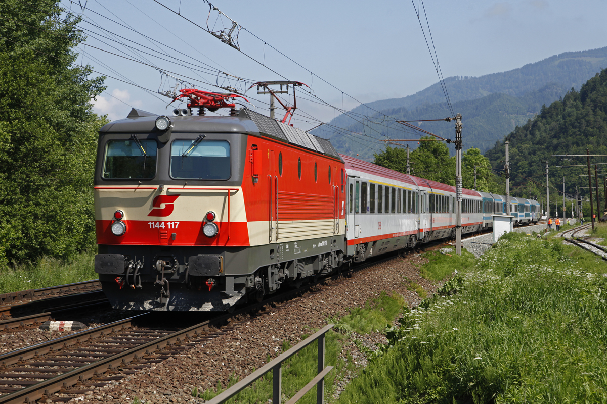 1144 117 mit EC151 kurz vor dem Bf. Mixnitz - Bärenschützklamm am 4.06.2014.
